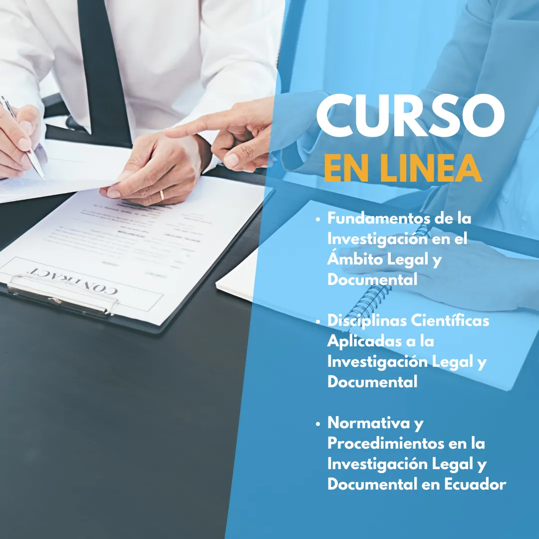 Capacitación dirigida a profesionales del ámbito legal y forense, enfocada en los fundamentos, disciplinas científicas y normativas aplicadas en la investigación documental y legal en Ecuador.